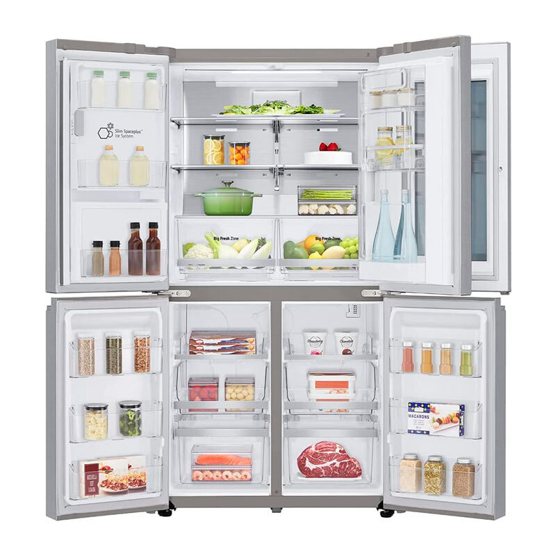 با دو ضربه، پنل شیشهای روشن میشود و میتوان داخل یخچال را دید بدون باز کردن کامل درب، که باعث کاهش هدررفت سرما میشود.چند درب / تقسیمبندی هوشمند