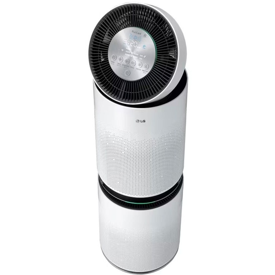 کنترل هوشمند و امکانات مدرن: شامل اتصال وایفای و پشتیبانی از LG ThinQ برای کنترل از راه دور، هشدار تعویض فیلتر، سنسور ذرات و بو (تشخیص کیفیت هوا)، قفل کودک و تنظیم سرعت (۵ حالت + توربو) است.